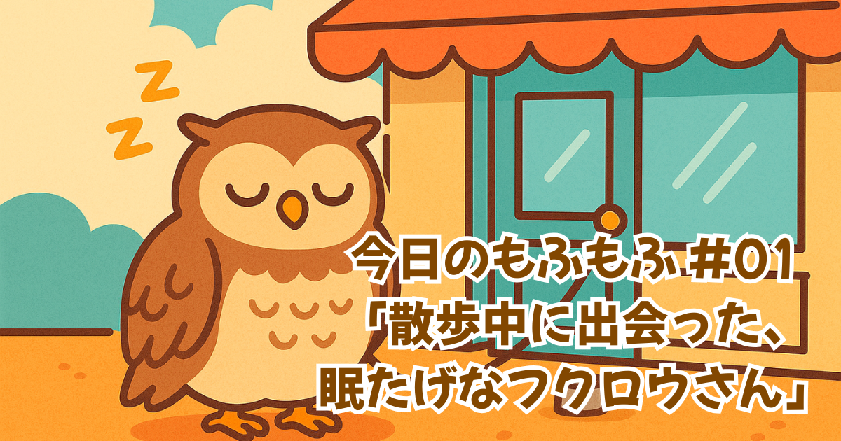 散歩の途中、飲食店の前でぽつんと座っているフクロウを見つけました。